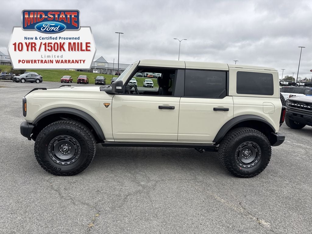 Desert Sand 2025 Ford Bronco Badlands 4WD 10-Speed Automatic 2.7L EcoBoost V6 Price includes: $2500 - Retail Customer Cash. Exp. 03/31/2026